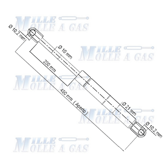 2 Pistoni Molle a Gas Interasse 490 mm Foro 10,2 mm - Ricambio