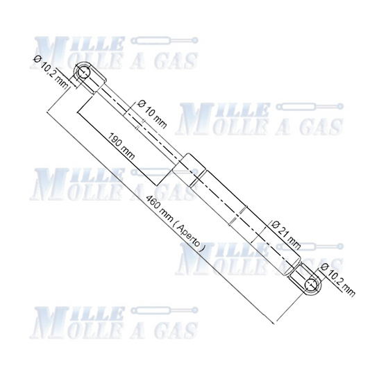 2 Pistoni Molle a Gas Interasse 460 mm Foro 10,2 mm - Ricambio