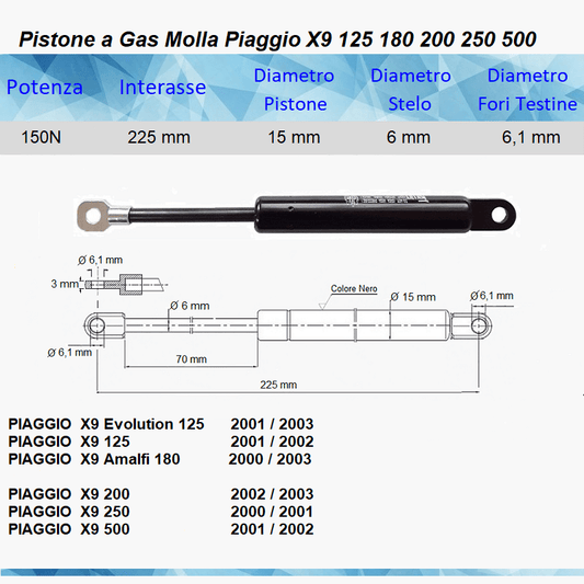 PISTONE A GAS MOLLA PER SELLA PIAGGIO X9 125 180 200 250 500
