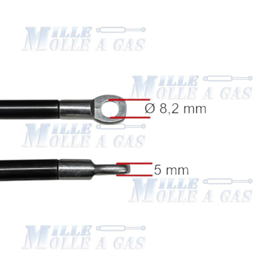 Pistone Molla a Gas Interasse 490 mm, Foro Ø 8,2 mm - Ricambio