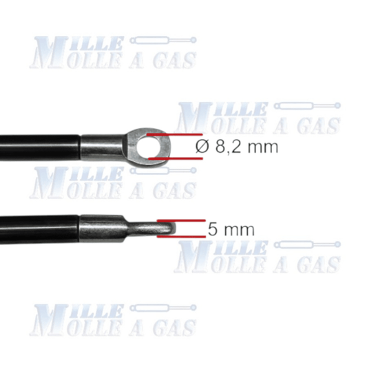 Pistone Molla a Gas Interasse 530 mm, Foro Ø 8,2 mm - Ricambio