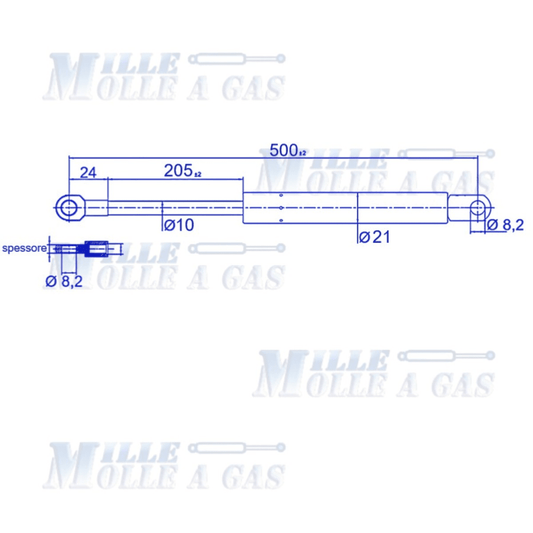 Pistone Molla a Gas Interasse 500 mm Foro Ø 8,2 mm - Ricambio